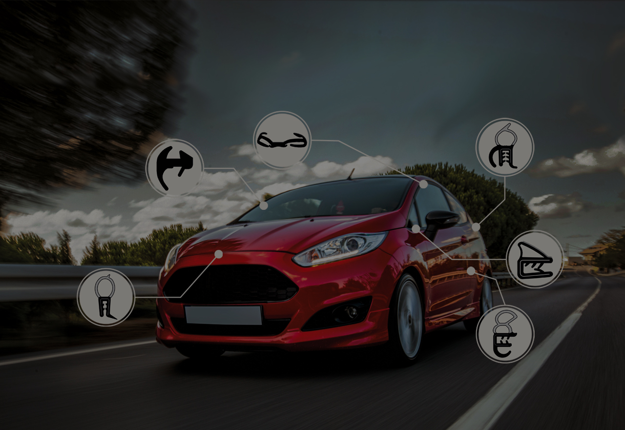 Usado em portas de automóveis e aberturas dos mais variados tipos, como cabines agrícolas e da linha amarela, bagageiros de ônibus, porta-malas, portas e portinholas.
