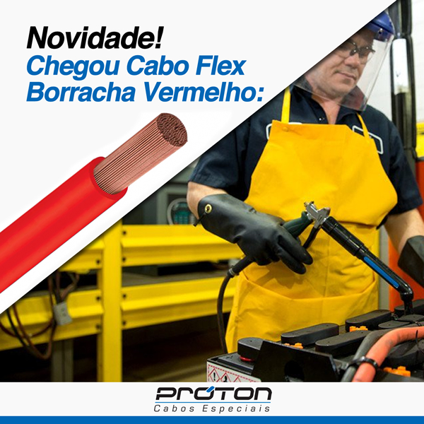 A Próton Cabos possui amplo estoque de Cabos flex borracha, com bitola que varia de 16mm² à 120mm², e agora nas cores preta e vermelha.